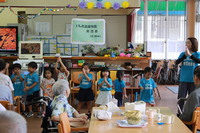 おじいちゃん、おばあちゃんの前で紅芋タルトのダンスを披露♪